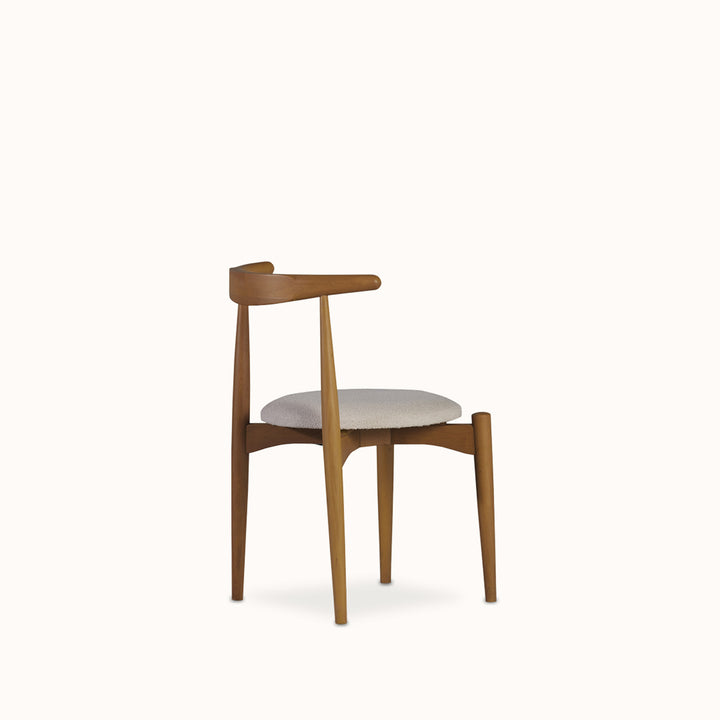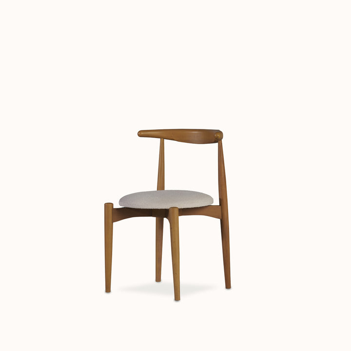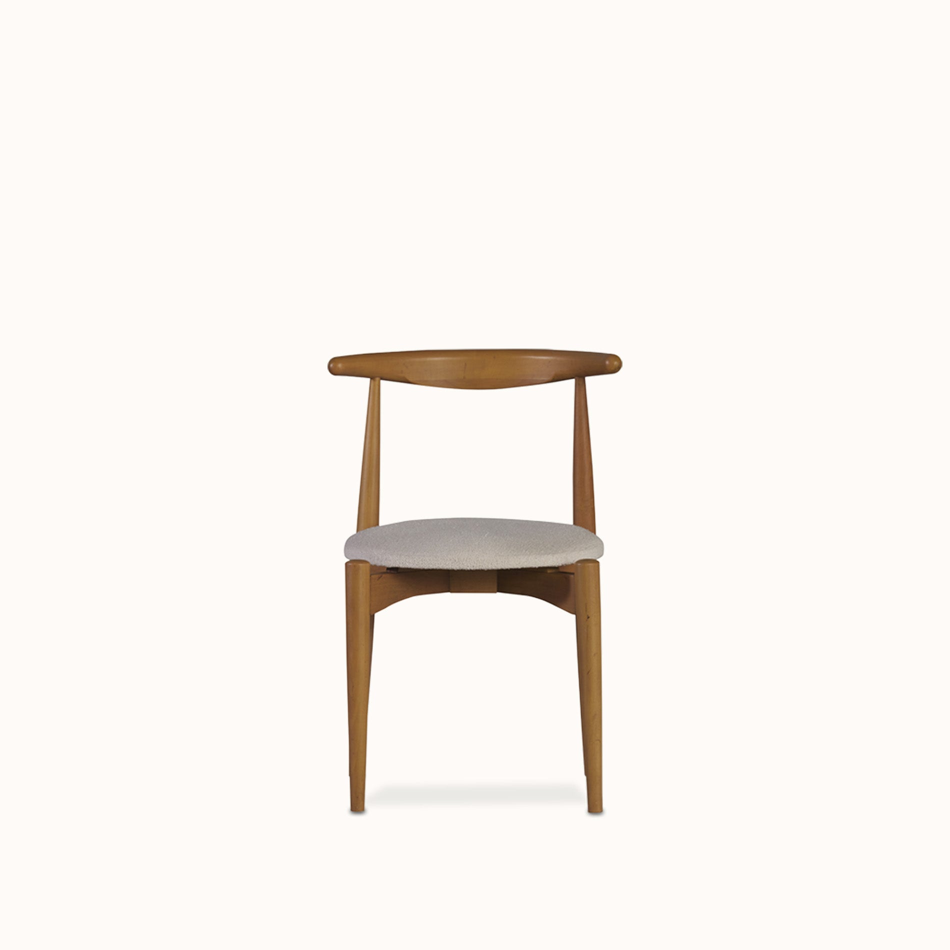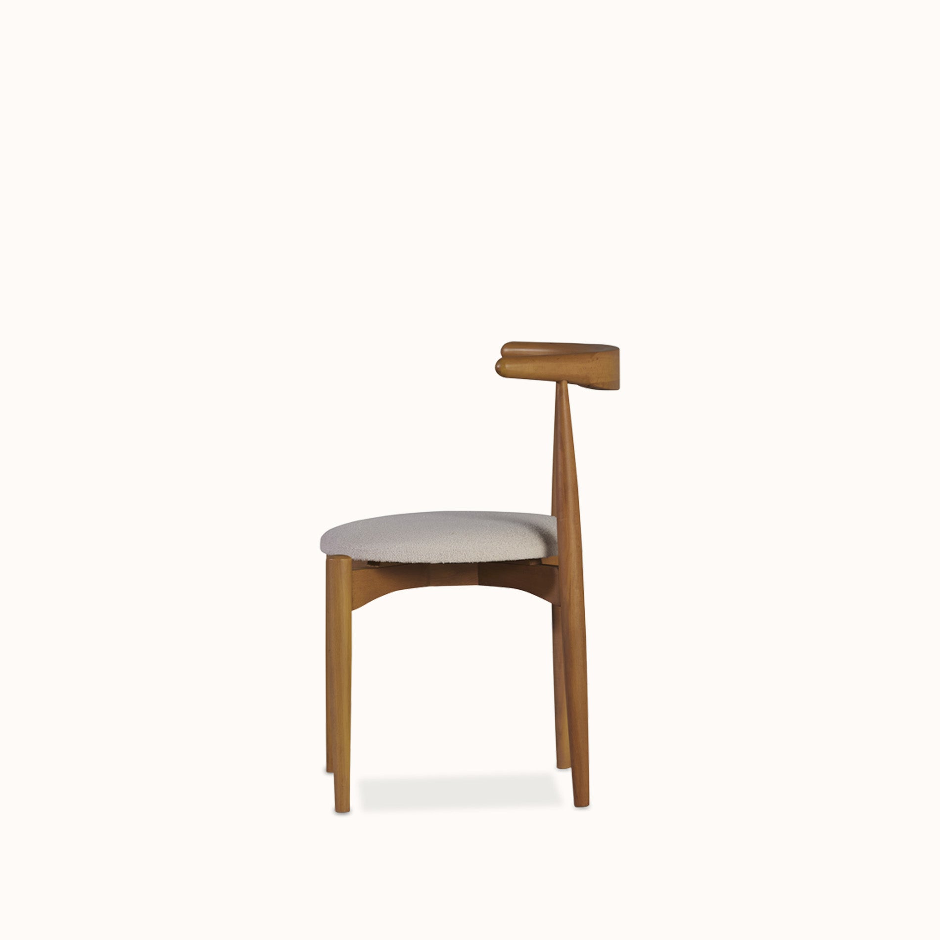 Dengeli formu ve seçkin duruşuyla bu ahşap sandalye, modern tasarımın zamansız bir yorumunu sunar. Yumuşak geçişlerle şekillendirilmiş sırt detayı, sade formuna karakter katarken; doğal ahşap iskelet ve kumaş kaplı oturum yüzeyi konfor ile estetiği kusursuz bir dengede buluşturur. Minimal çizgileri sayesinde hem çağdaş hem de klasik mekânlara uyum sağlayan bu sandalye, yaşam alanlarına sakin, özgün ve seçkin bir atmosfer kazandırmak isteyenler için tasarlandı.