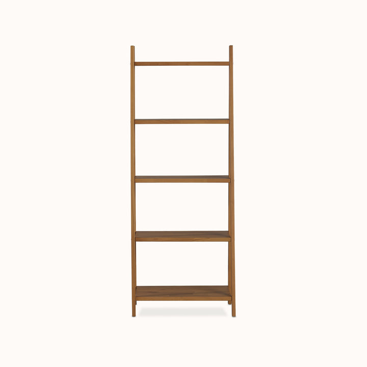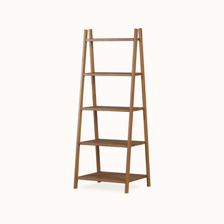 Kayın masif ahşap merdiven kitaplık, 150x50x57 cm ölçülerinde modern ve sağlam yapısıyla kitaplık ve dekoratif raf ihtiyacına doğal çözüm sunar.